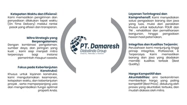 "PT. Damaresh Globalindo Group terbukti sebagai mitra yang sangat profesional dan terpercaya. Pengadaan peralatan kami terlaksana dengan kualitas terbaik dan yang paling penting, sesuai jadwal yang sangat ketat. Komitmen mereka pada On Time Delivery benar-benar membantu kelancaran operasional kami."